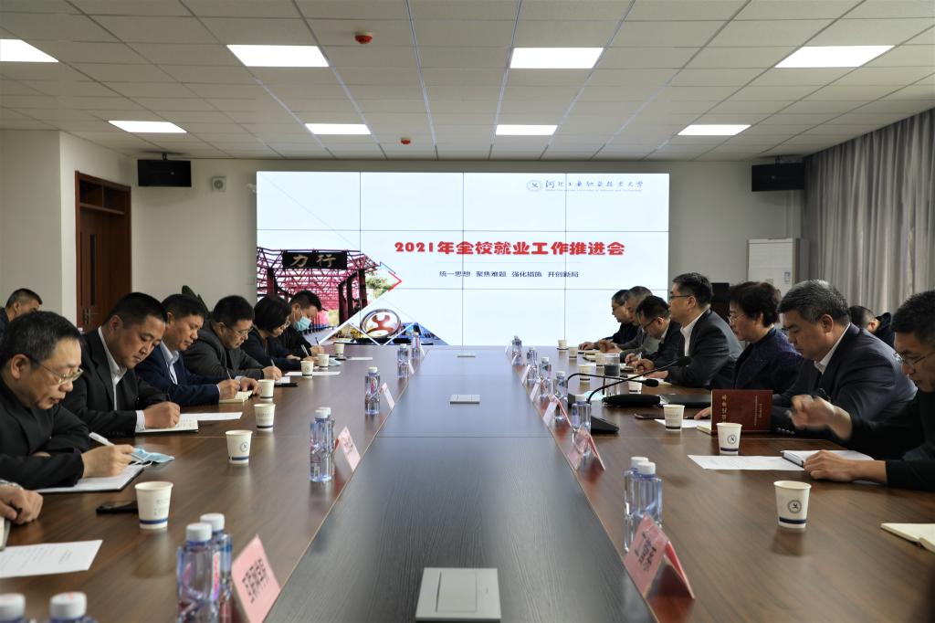 3月31日上午,galaxy银河(中国)网页版召开2021年就业工作推进会,部署我校下一阶段就业主要工作,促进我校毕业生更高质量更充分就业。学校校长薛晓萍,副校长张福仁,招生就业指导中心、财务处相关负责人和各院系主任、书记、副书记参加会议。
