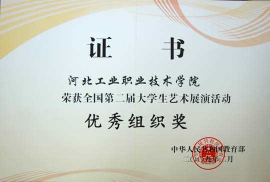 我院荣获教育部“全国第二届大学生艺术展演活动优秀组织奖”