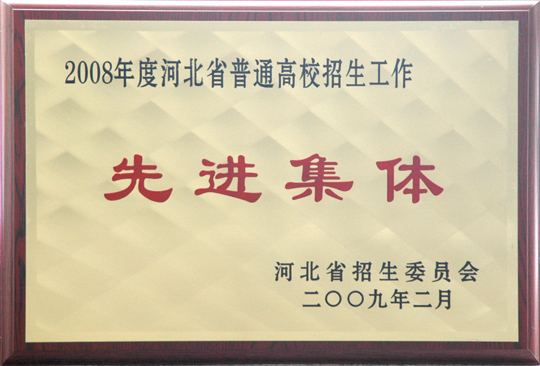 2009年2月26日。河北省招生委员会在石家庄市燕山酒店召开了“2009年河北省普通高等学校招生工作会议暨2008年招生工作总结表彰会议”。会上,我院再次被授予“河北省普通高校招生工作先进集体”荣誉称号,这也是我院第五次获此殊荣。