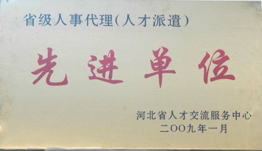 根据省人事厅《关于表彰2008年河北省省级人事代理(人才派遣)先进单位和先进个人的决定》(冀人才[2009]2号),我院荣获2008年河北省省级人事代理工作先进集体荣誉称号。